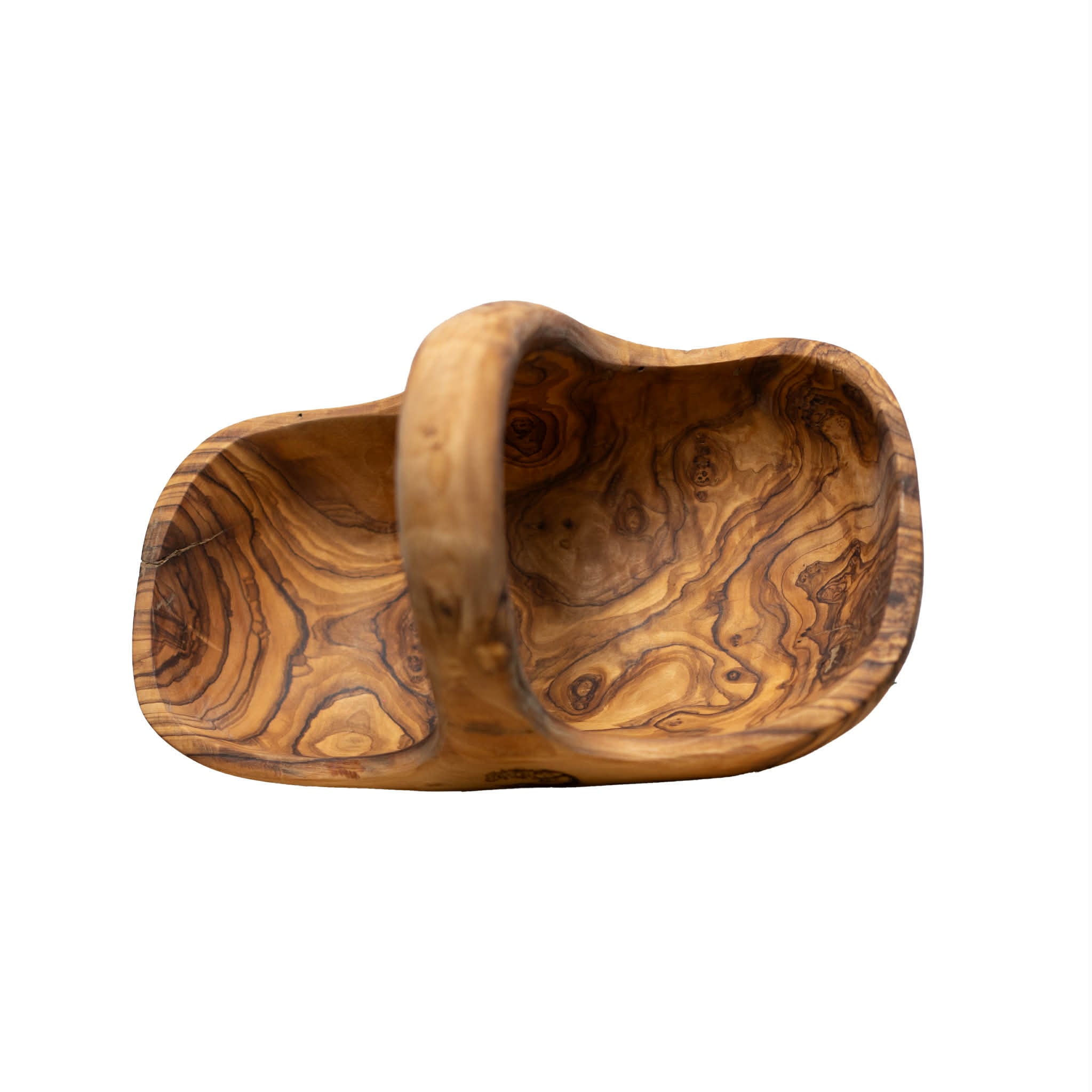 Panier sculpté à la main dans une seule pièce de bois d’olivier, mettant en valeur ses veines naturelles uniques. Idéal pour présenter fruits secs, dattes ou simplement décorer votre intérieur avec une touche chaleureuse et authentique.