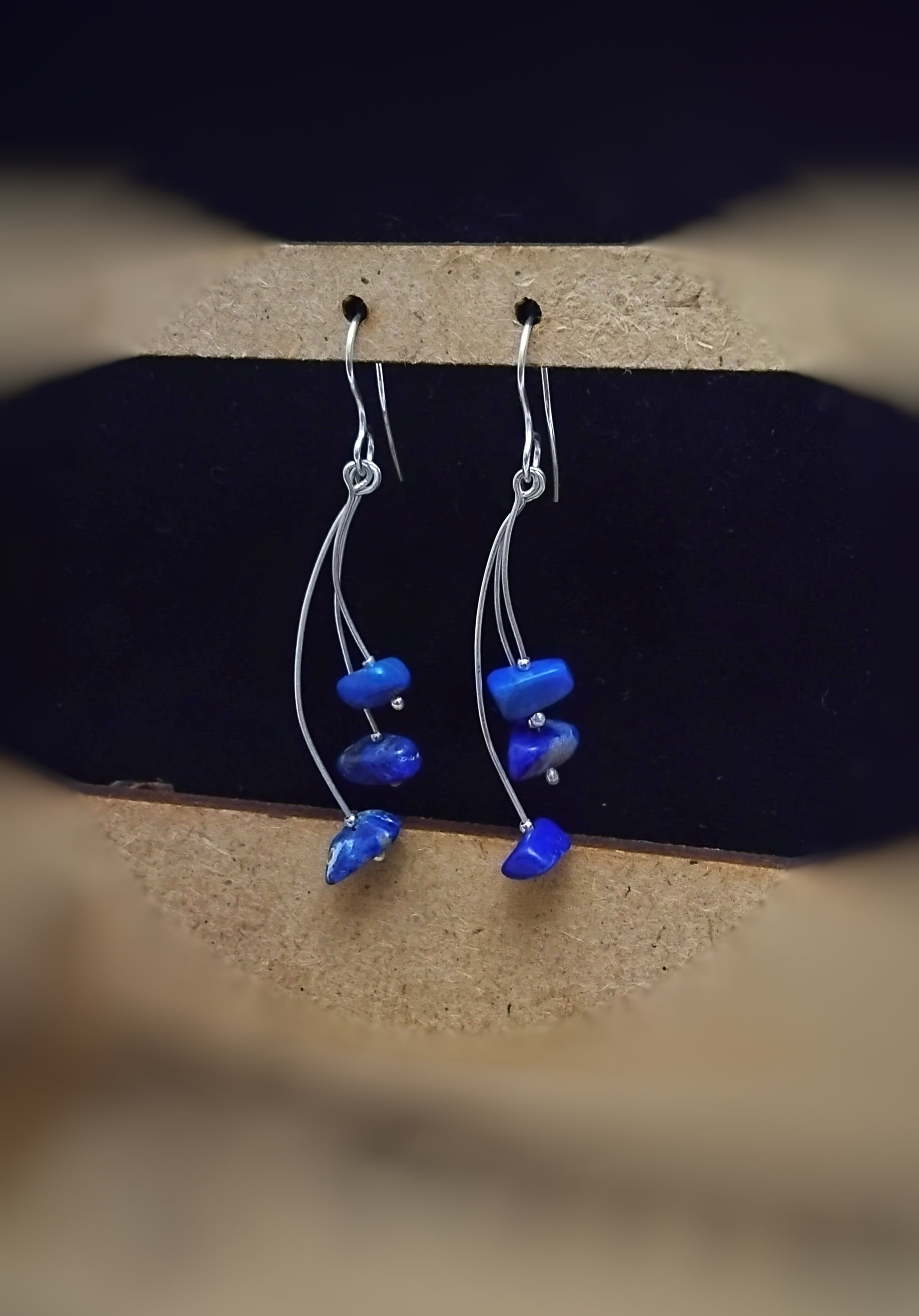 Boucles d'Oreilles en Argent avec Pierres Lapis Lazuli (5,5 cm)