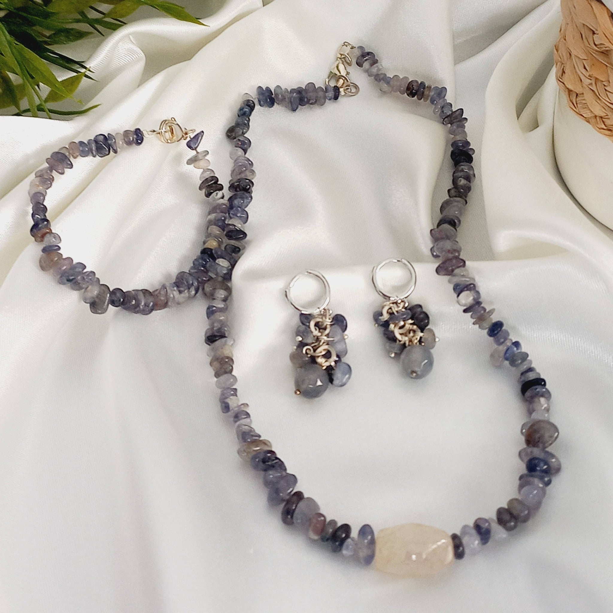 parure collier bracelet et boucles en pierres gemmes - Bijoux Kenza | Artisan Tunisien