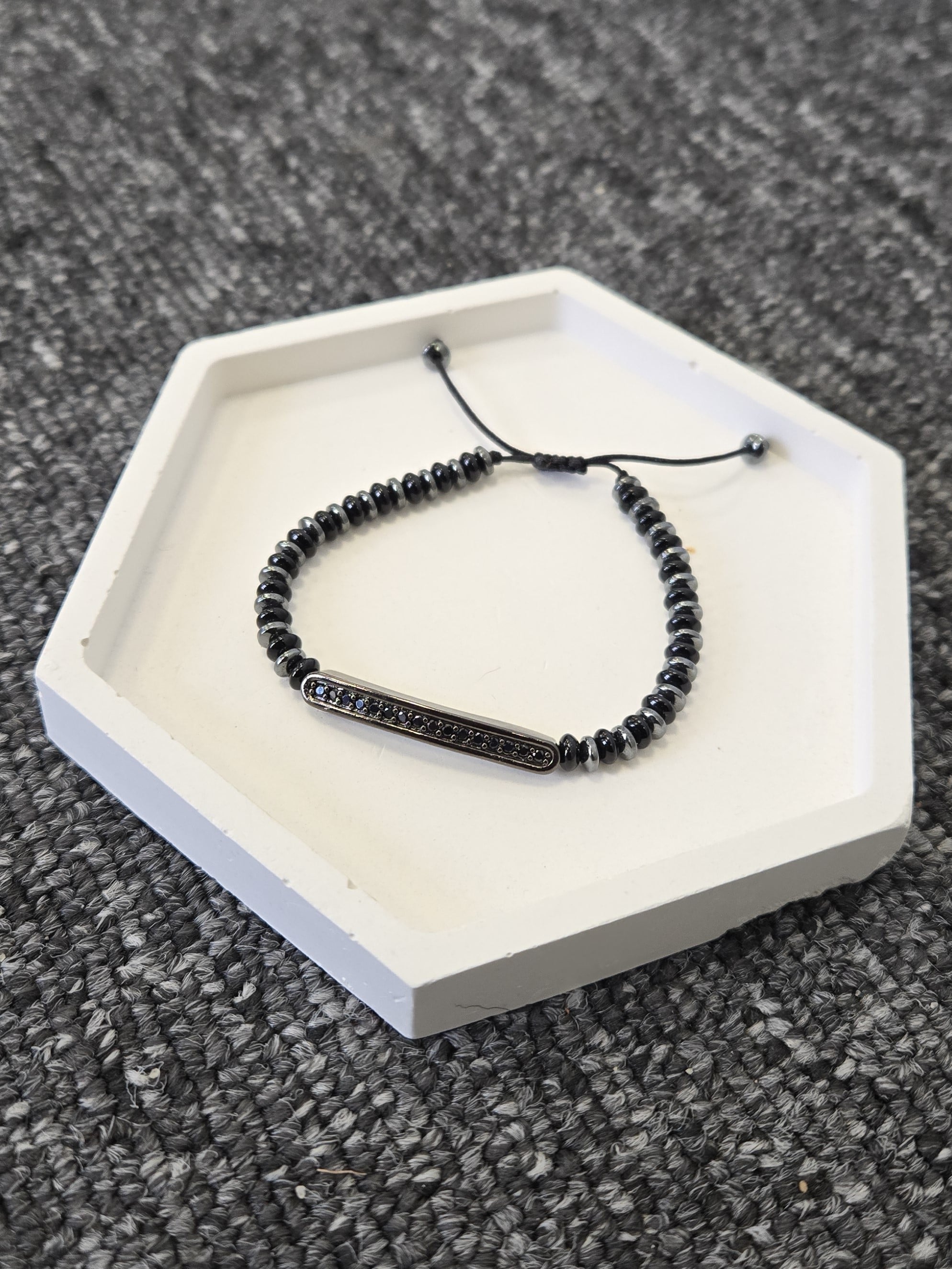 Bracelet en perle noire et acier inoxydable - Hlela | Artisan Tunisien