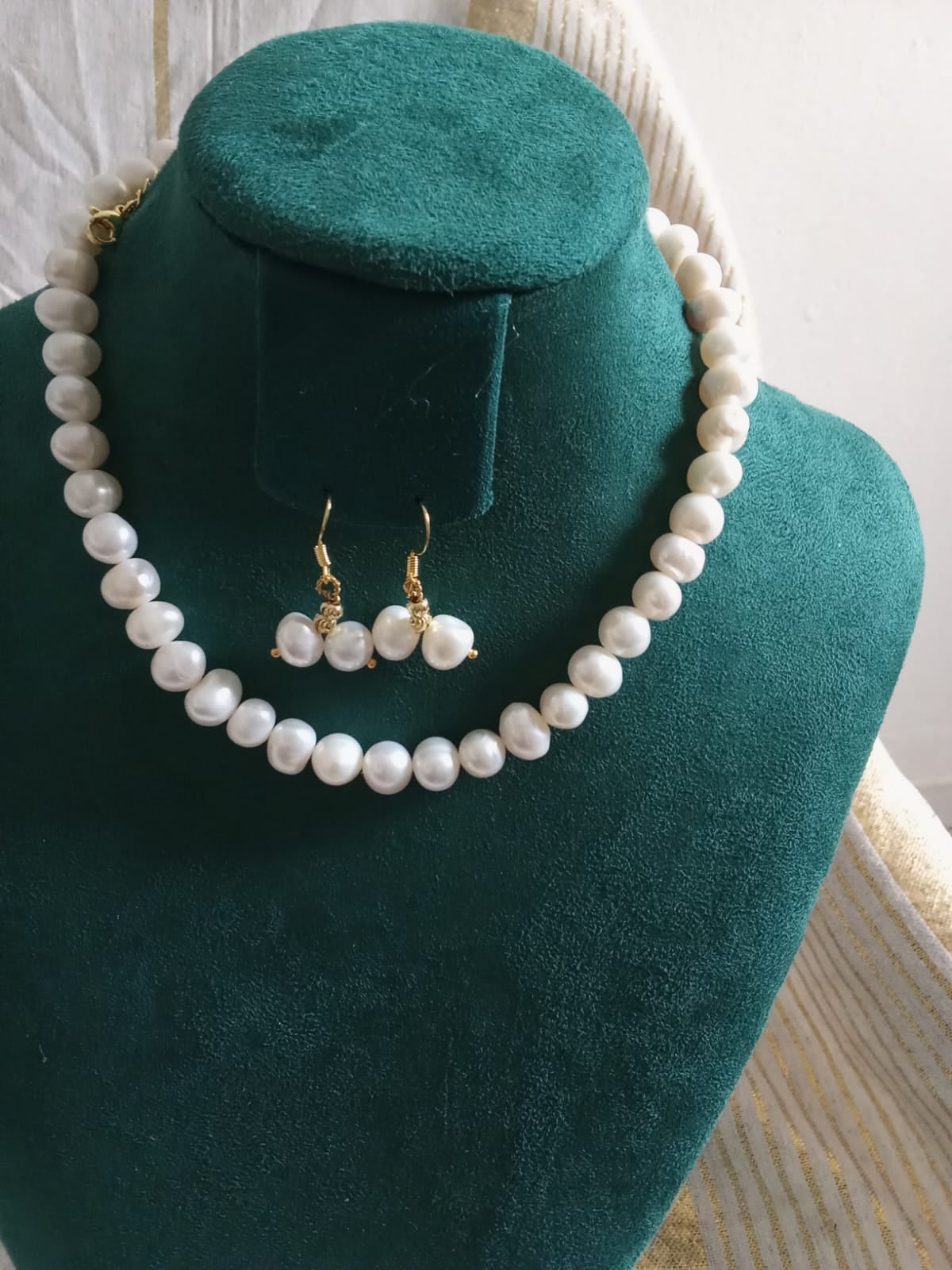 Parure collier & boucles d’oreilles – perles naturelles blanche - Aura d’Ambre | Artisan Tunisien