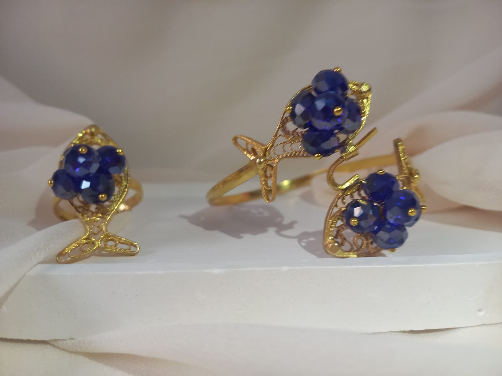 Parrure artisanale bracelet & bague – motif poisson - Aura d’Ambre | Artisan Tunisien