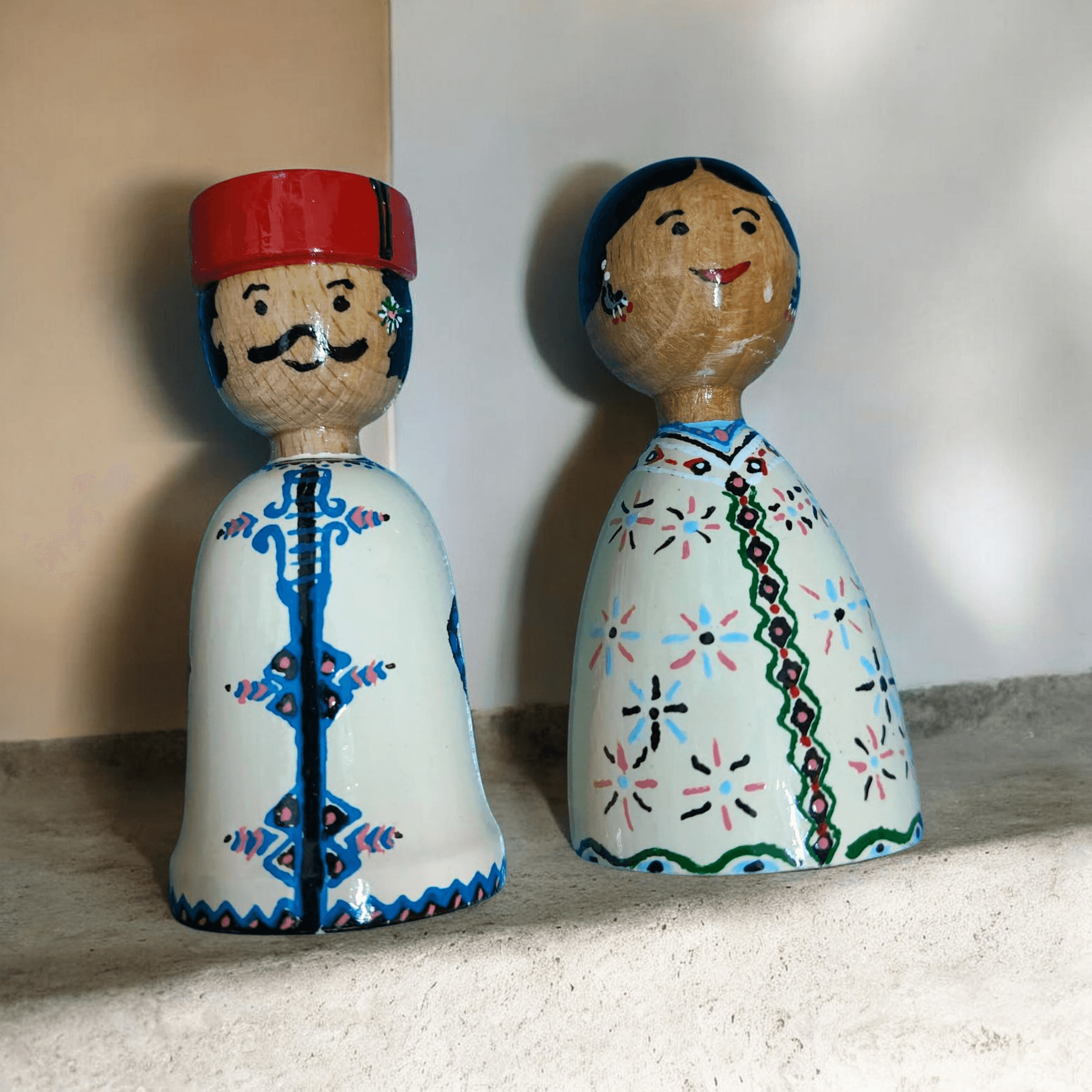 Couple magnette en bois de hêtre peint à la main - Al Sharif Makrem | Artisan Tunisien