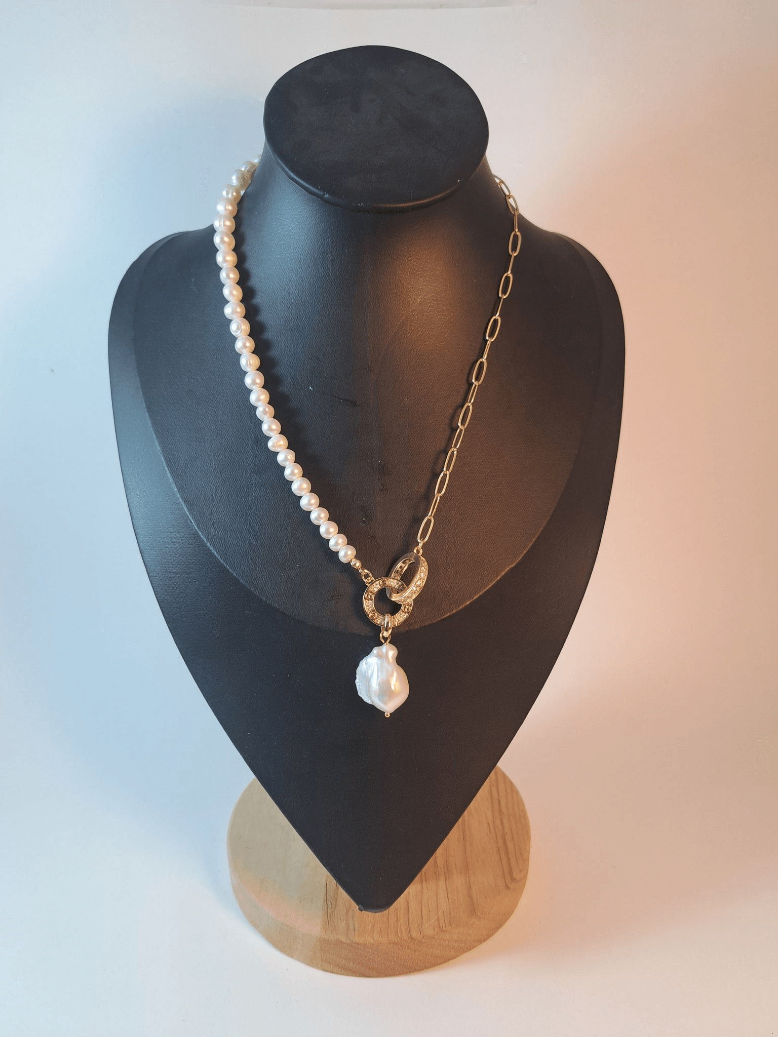 Collier en véritable perles de thailande pendentif en perle baroque, chaine et fermoir en acier inoxydable
