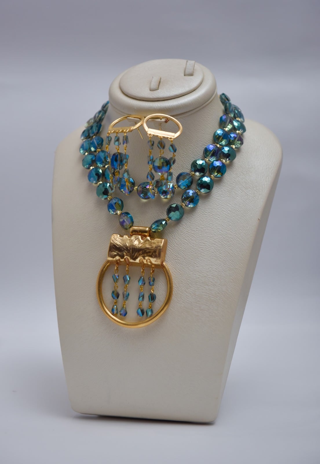 Le pendentif central, aux lignes harmonieuses, confère à l’ensemble un caractère noble et intemporel. Cette parure incarne l’alliance entre savoir-faire artisanal et élégance contemporaine.