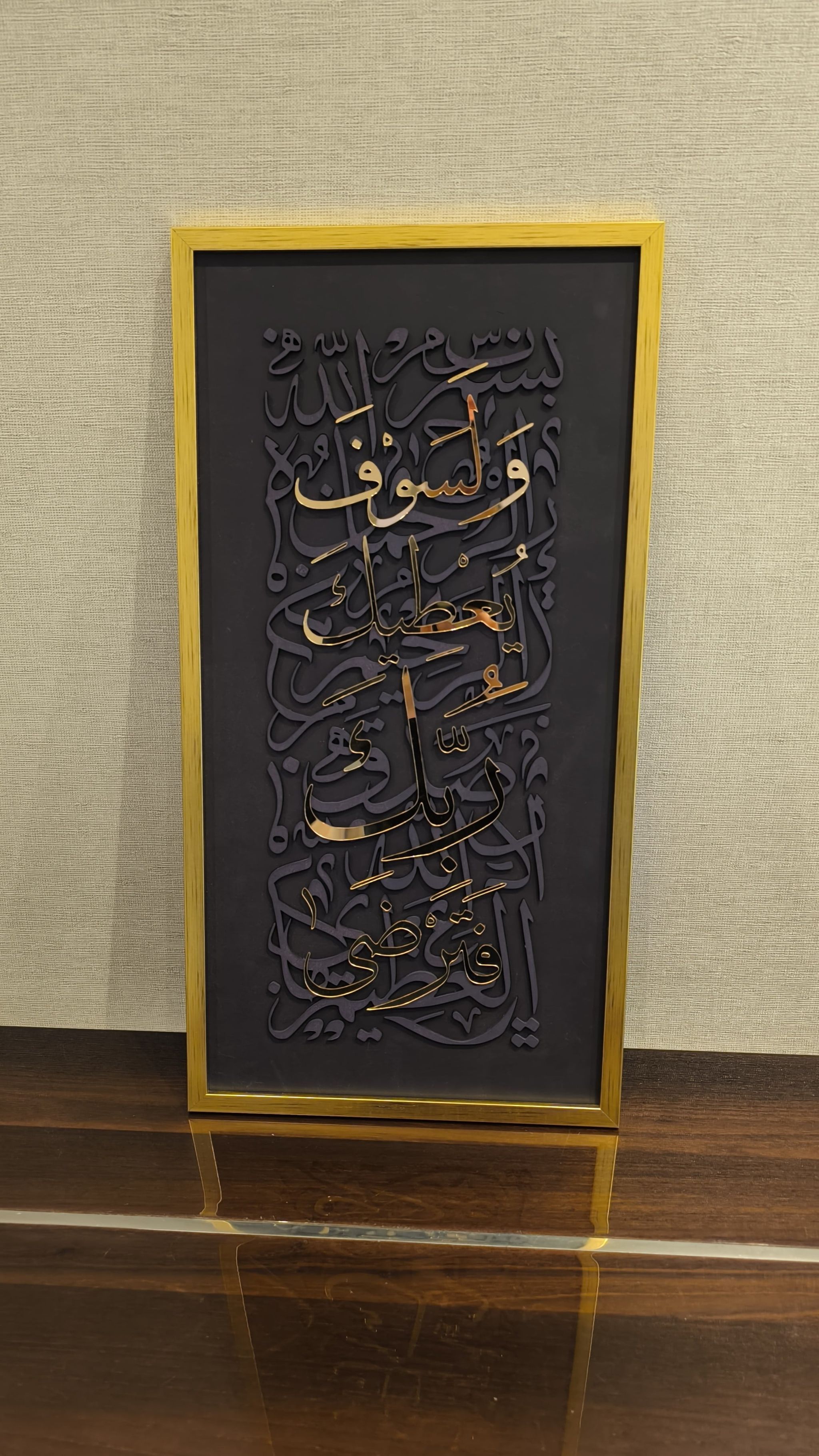 Encadrée par un cadre doré aux lignes épurées, cette œuvre incarne l’alliance harmonieuse entre tradition calligraphique et design moderne. Une pièce décorative forte et intemporelle, idéale pour sublimer un intérieur raffiné et instaurer une atmosphère spirituelle, chaleureuse et prestigieuse.