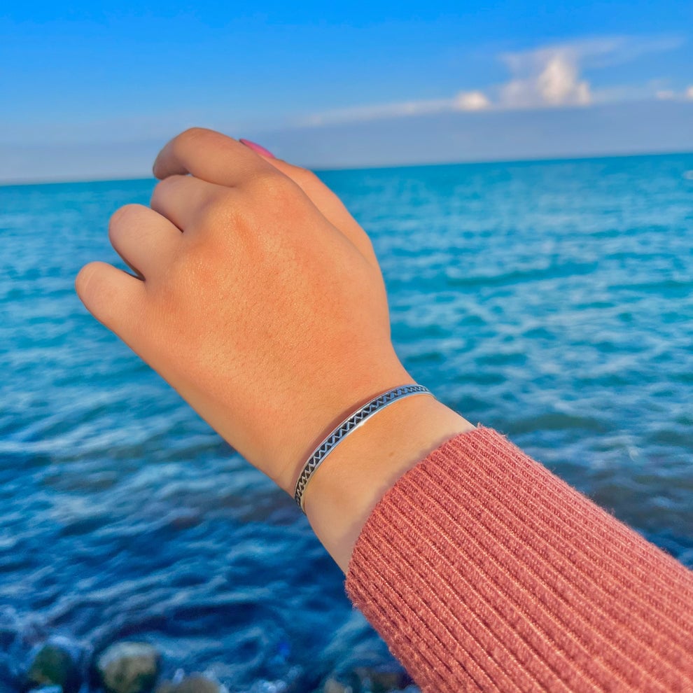 Jonc en argent Agadez fine avec profil Zigzag - Lunja | Artisan Tunisien