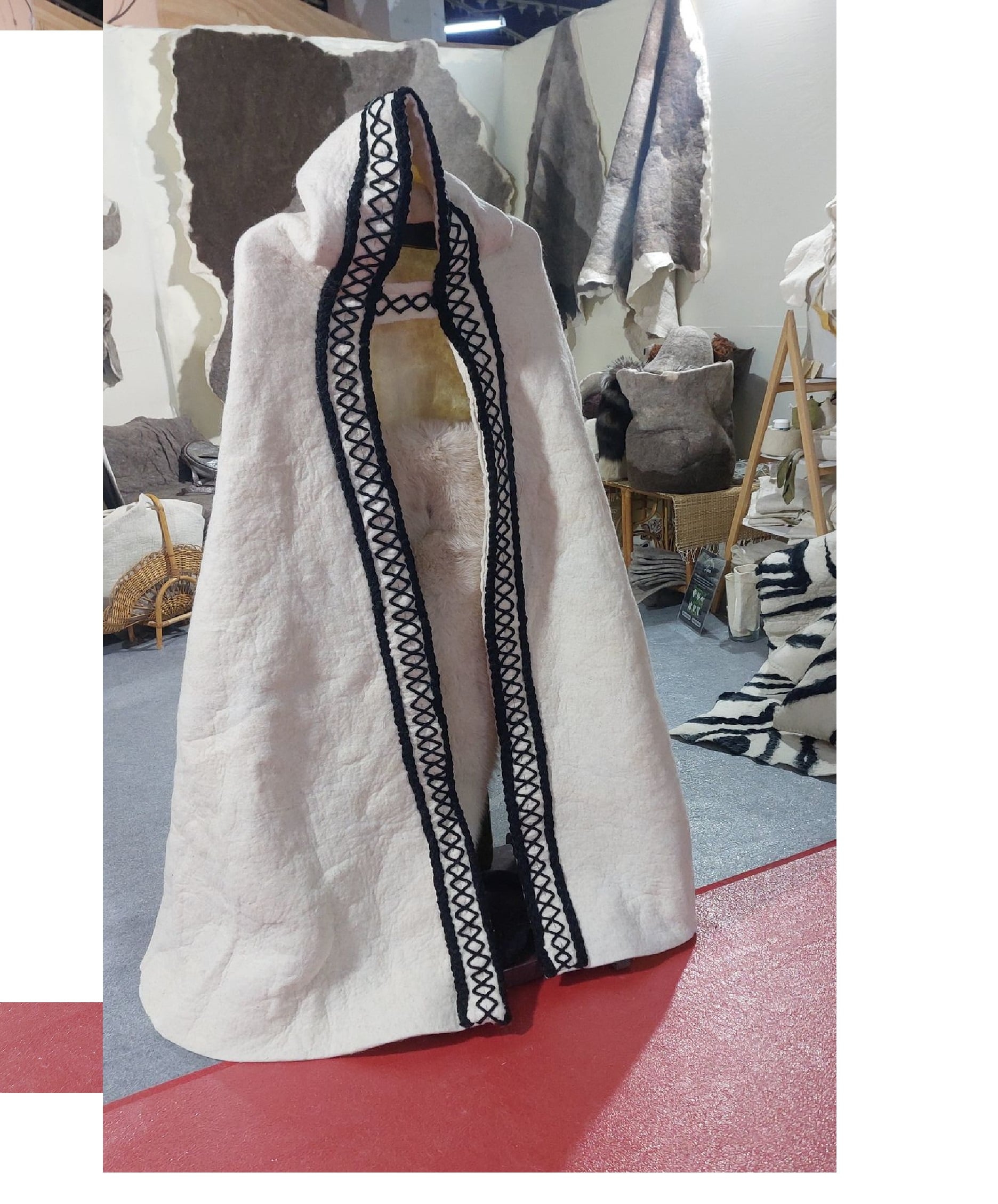 Barnous en laine écru en laine vierge brodée à la main avec fil coton